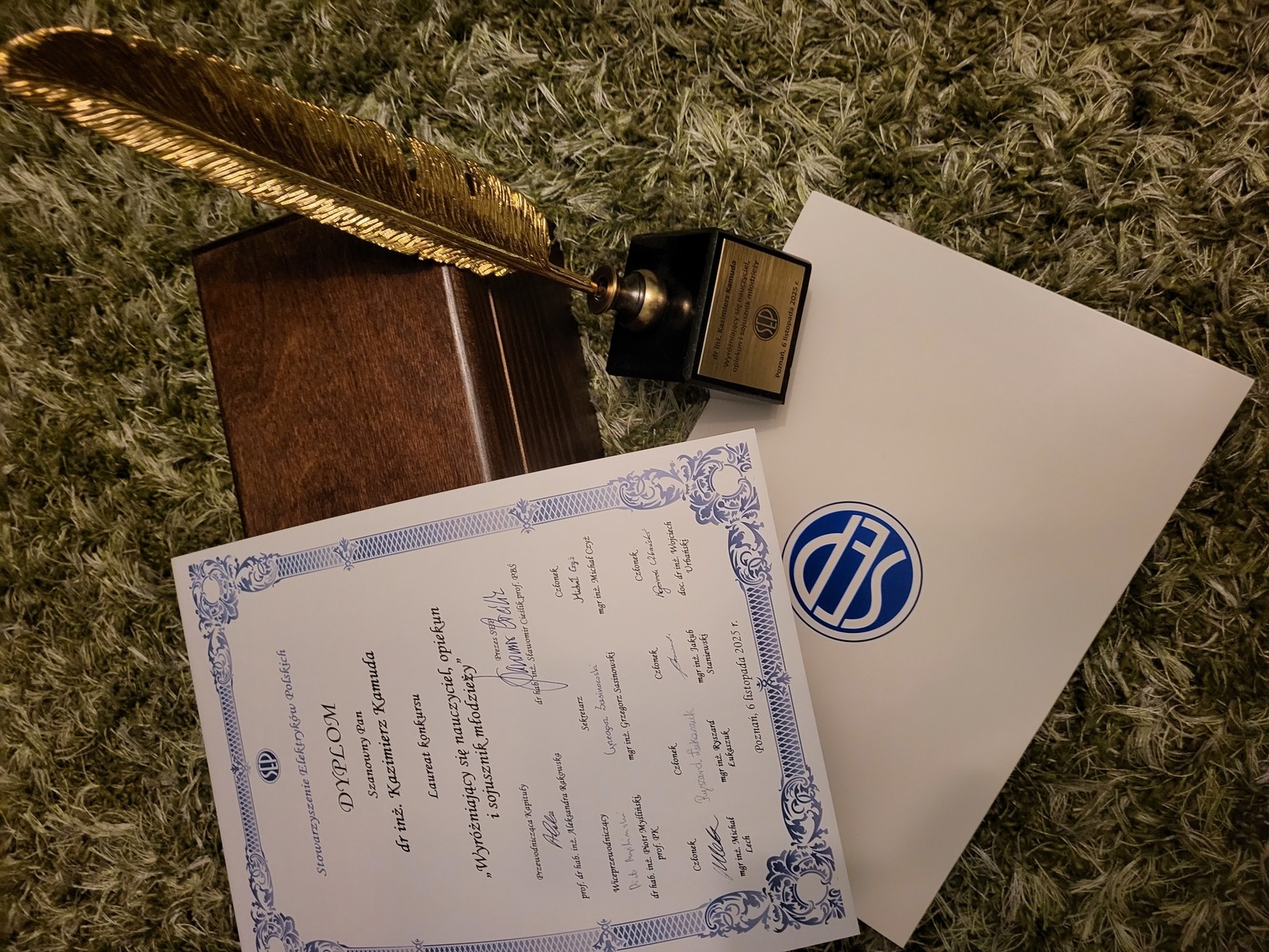 Miło nam poinformować, że Kolega Kazimierz Kamuda został laureatem Konkursu na Wyróżniającego się Nauczyciela, Opiekuna i Sojusznika Młodzieży. To prestiżowe wyróżnienie zostało przyznane przez Kapitułę Konkursową pod przewodnictwem prof. Aleksandry Rakowskiej, powołaną przy Zarządzie Głównym Stowarzyszenia Elektryków Polskich. Wręczenie statuetki oraz dyplomu odbyło się podczas XXVI Ogólnopolskiego Dnia Młodego Elektryka, w dniu 6 listopada 2025 roku, w Poznaniu. Tym samym nazwisko naszego Kolegi zostało wpisane do „Złotej Księgi Wyróżnionych Nauczycieli, Sojuszników i Opiekunów Młodzieży” Zarządu Głównego SEP.